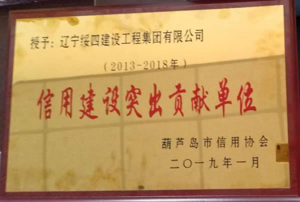 我公司榮獲“2013-2018年度葫蘆島市信用建設突出貢獻單位”