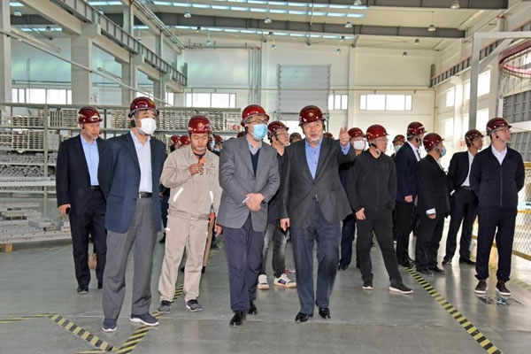 省住建廳領(lǐng)導(dǎo)、省建協(xié)領(lǐng)導(dǎo)及與會代表參觀1#車間-鋁模板生產(chǎn)車間