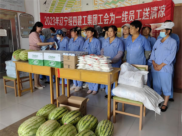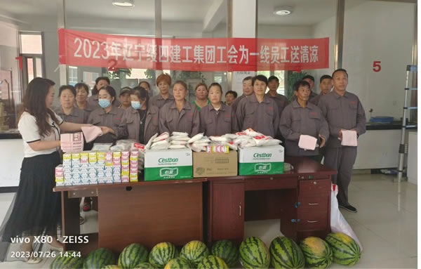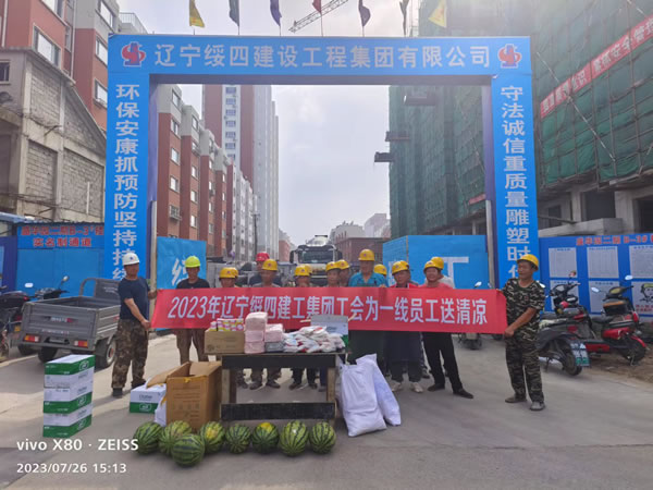 7月25日—28日,遼寧綏四建設(shè)工程集團(tuán)有限公司開展送清涼活動。集團(tuán)董事長趙寶貴親自布置,黨支部書記張艷舫、工會主席薛桂枝、所屬企業(yè)相關(guān)負(fù)責(zé)人房建、喬揚(yáng)、王剛分別帶隊,慰問高溫下堅守在一線的員工們。