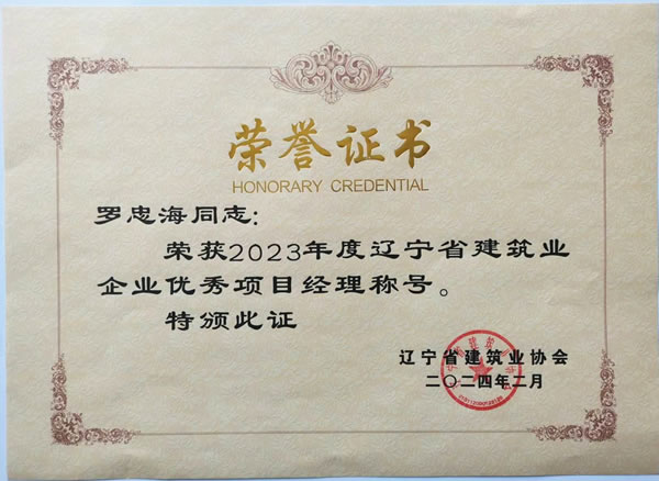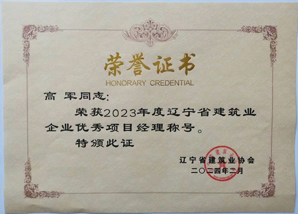 遼寧綏四建設(shè)工程集團(tuán)有限公司的高軍、羅忠海、韓凱夫三名同志被評(píng)為2023年度遼寧省建筑業(yè)企業(yè)優(yōu)秀項(xiàng)目經(jīng)理,并于2024年5月獲得遼寧省建筑業(yè)協(xié)會(huì)頒發(fā)的榮譽(yù)證書。