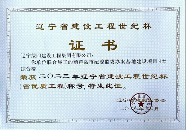 葫蘆島市紀(jì)委監(jiān)委辦案基地建設(shè)項目4#綜合樓 榮獲2023年遼寧省建設(shè)工程世紀(jì)杯(省優(yōu)質(zhì)工程)稱號
