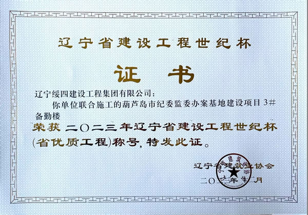 葫蘆島市紀委監(jiān)委辦案基地建設(shè)項目3#備勤樓 榮獲2023年遼寧省建設(shè)工程世紀杯(省優(yōu)質(zhì)工程)稱號